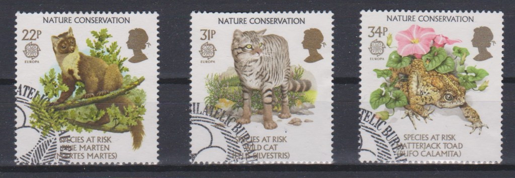 Engeland: Behoud van de natuur. Van links naar rechts: marter, wilde kat en pad.