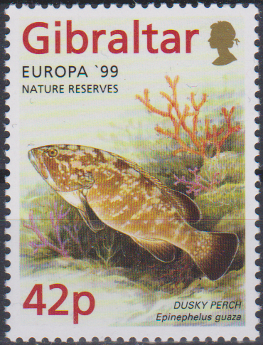 Gibraltar: Europa 1999 natuur behoud. Afbeelding: duistere baars.