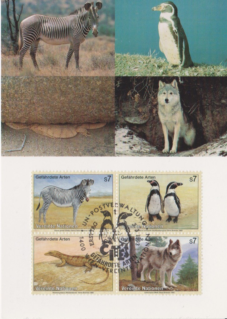 De getoonde zegels brengen de bedreiging van dieren en planten en hun milieu in beeld.